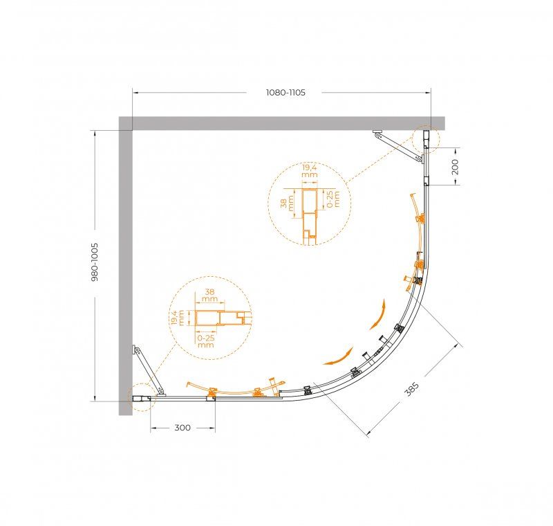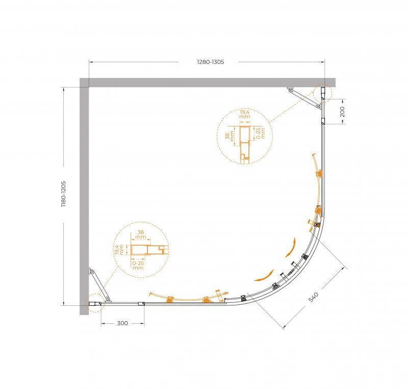 Регулировка ширины: предусмотрена за счет боковых профилей
