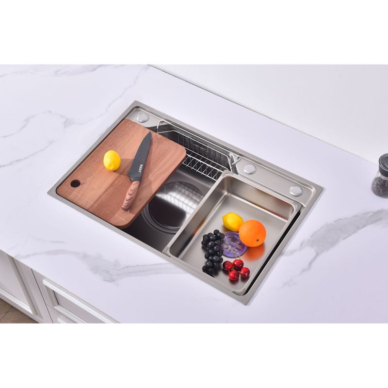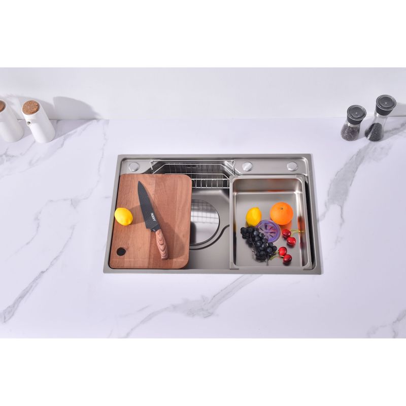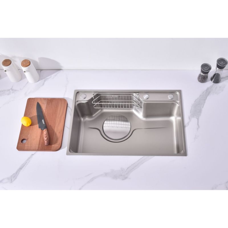 Комплект: кухонная мойка, сифон, крышка слива в цвет мойки, корзинка в слив для сбора мусора, корзина для кухонных предметов, разделочная доска