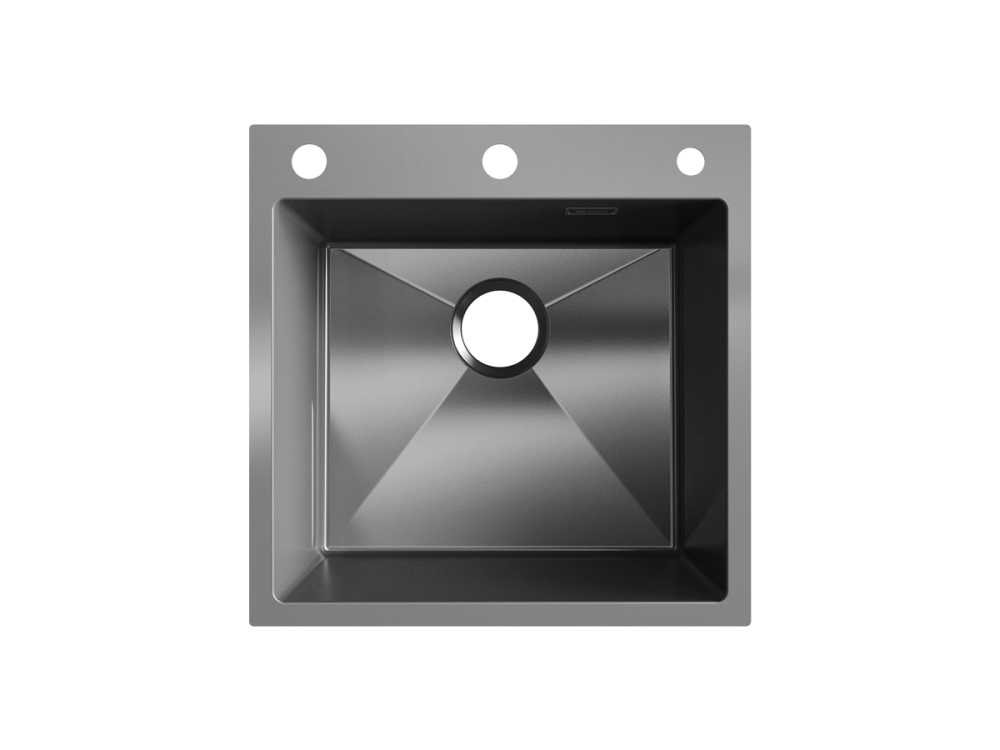 Мойка ULGRAN STEEL 500 Х 500, цвет «черная брашированная сталь» с тремя готовыми отверстиями под клапан-полуавтомат (35 мм), смеситель (35 мм) и дозатор (28 мм) и с брендированным плоским переливом изготовлена из высококачественной хирургической стали марки AISI 304 и абсолютно безопасна для здоровья человека.