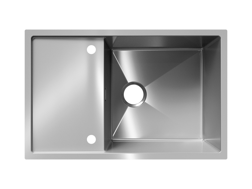 Реверсивная односекционная мойка с крылом ULGRAN STEEL 780 Х 500, цвет «брашированная сталь» с брендированным плоским переливом изготовлена из высококачественной хирургической стали марки AISI 304 и абсолютно безопасна для здоровья человека. Изделие имеет два готовых отверстия диаметром по 35 мм под смеситель и под круглую ручку управления клапан-полуавтоматом. Мойка является оборачиваемой - крыло можно расположить как справа, так и слева, по желанию потребителя.