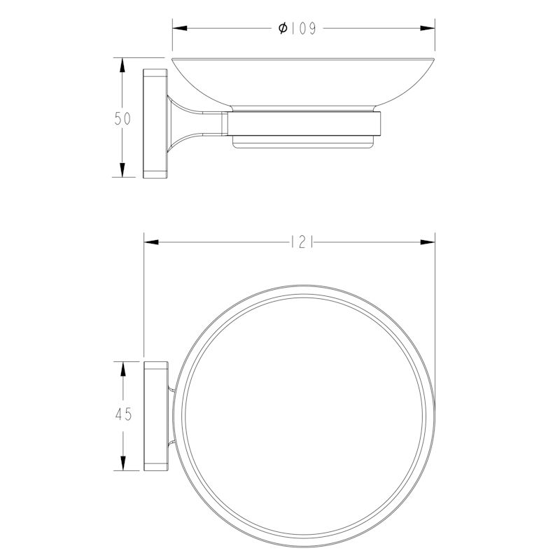 мыльница со стеклянным матовым блюдцем настенного монтажа, L=121 мм, H=50 мм