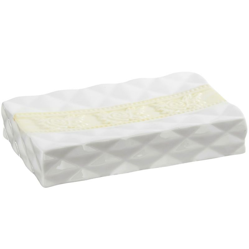 Мыльница Fora Diamond FOR-DM036 - изделие изготовлено из керамики, с характерными прямыми контурами и объемными геометрическими элементами выполнено в молочно-белой гамме с бежевой вставкой.