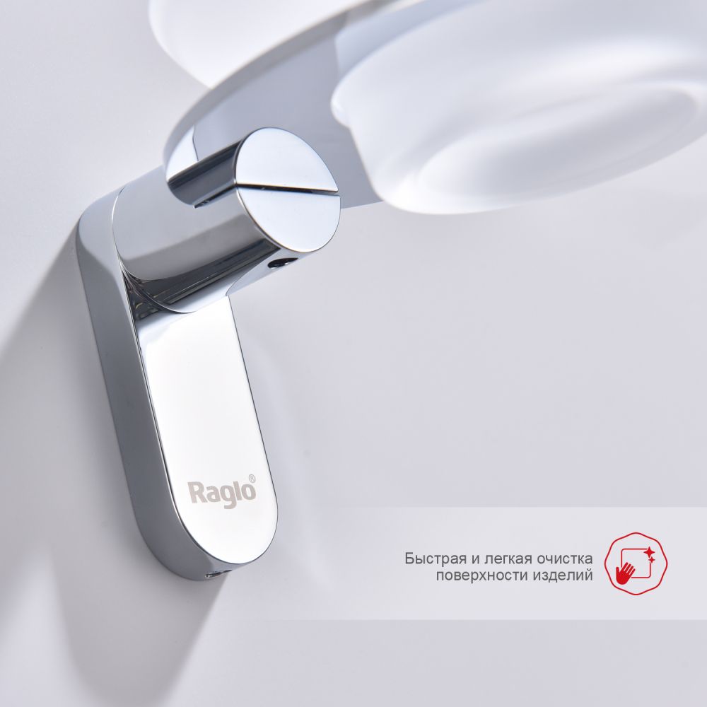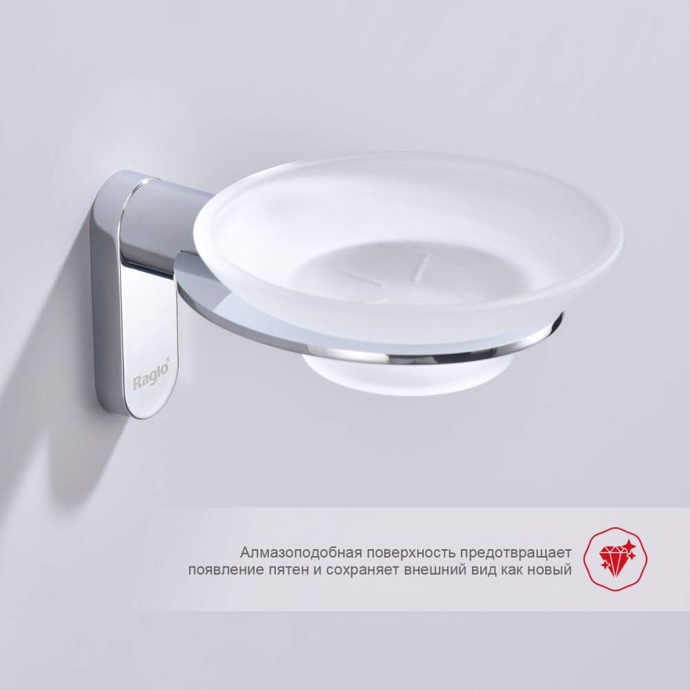 Raglo R300.02 Мыльница стеклянная с держателем. Форма округлая, цвет - хром. Крепление в комплекте.
