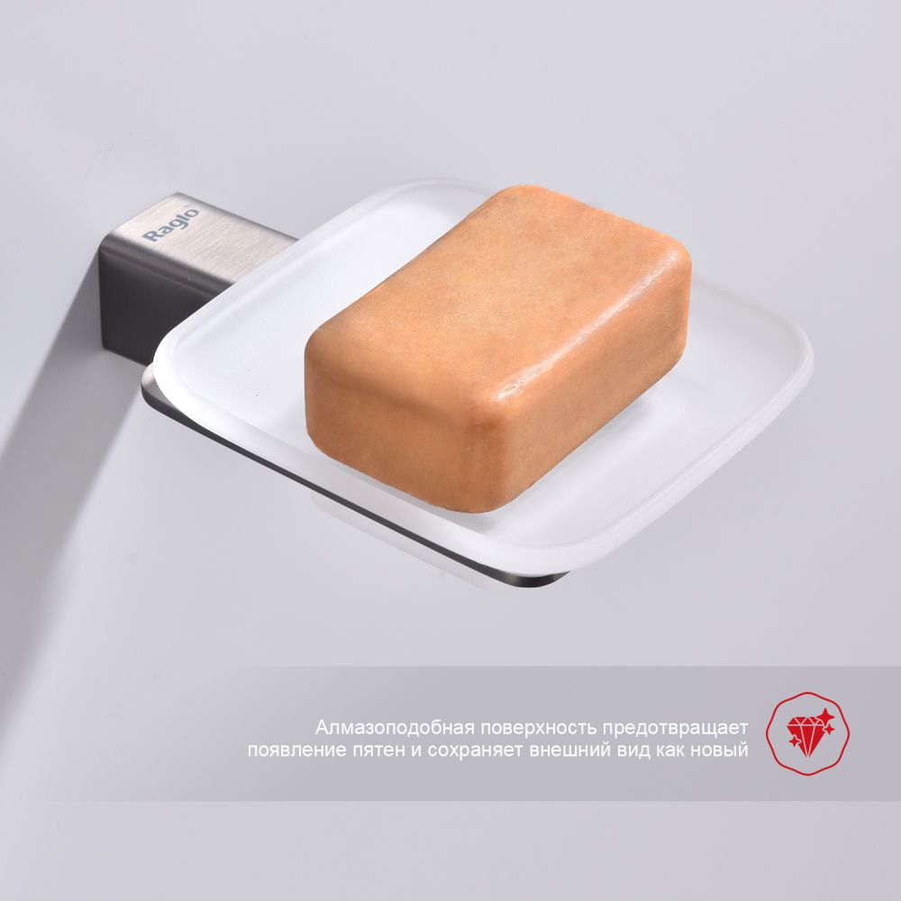 Raglo R301.02.09 Мыльница стеклянная с держателем. Форма квадратная, цвет - графит, полуматовое покрытие. Крепление в комплекте.