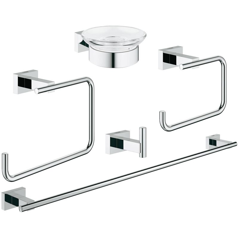 Набор аксессуаров для ванной Grohe Essentials Cube 40758001 из пяти предметов.