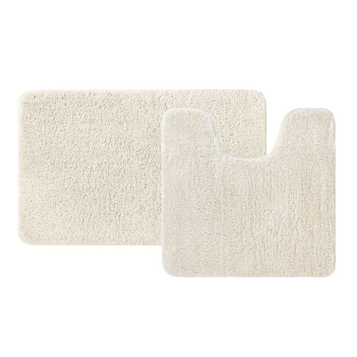 Набор из двух мягких ковриков для ванной теплого бежевого цвета с плотным высоким ворсом (2 см), очень приятных на ощупь. Стриженый ворс из микрофибры отлично держит форму, легко чистится и быстро сохнет. Коврики предназначены для ванной и для туалета (маленький коврик имеет вырез под унитаз).