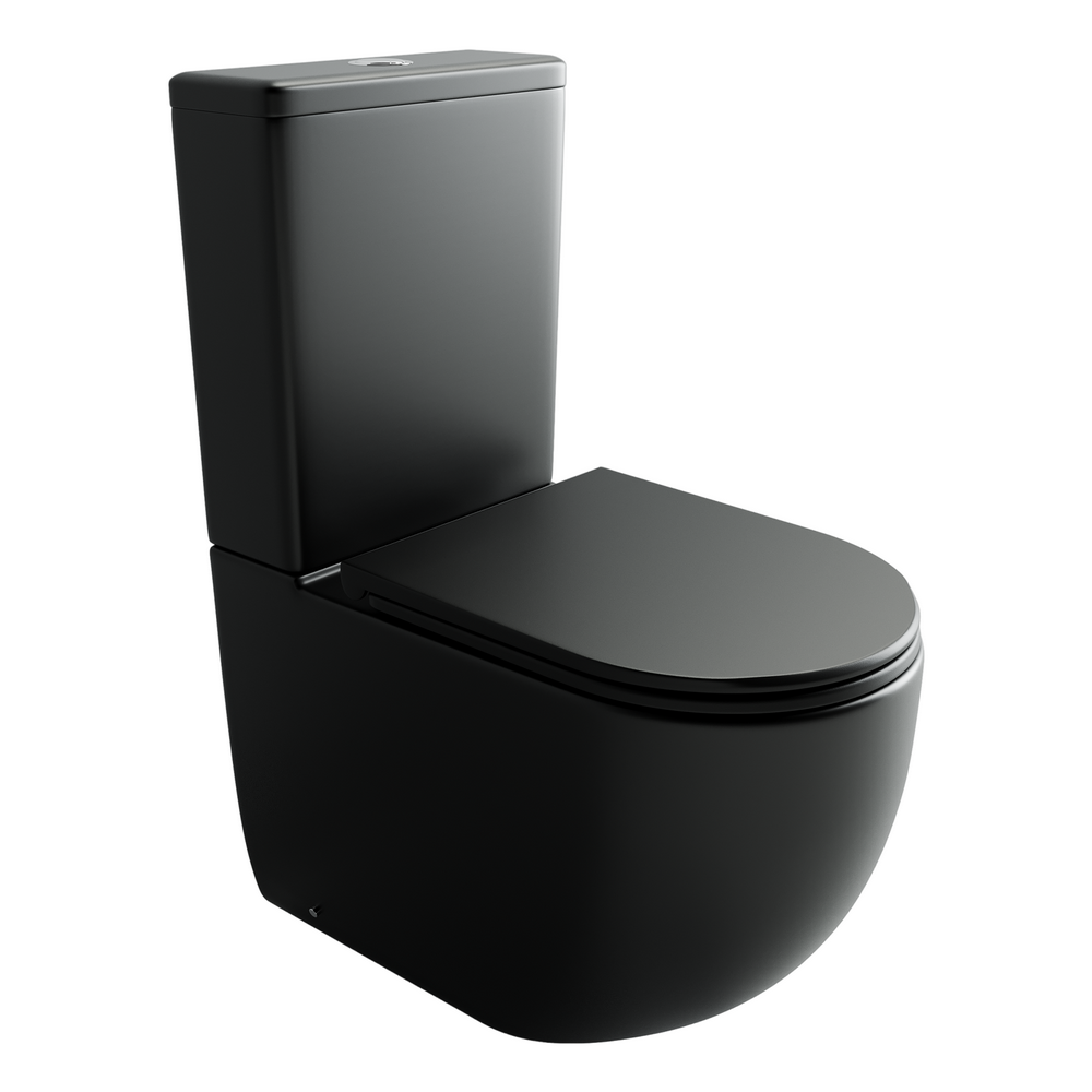 Напольный пристенный унитаз с бачком Метрополь (Metropol), смыв Торнадо, нижняя подводка, горизонтальный выпуск, с крепежом и сиденьем-крышкой с микролифтом, цвет черный матовый, артикул CN4001TMB