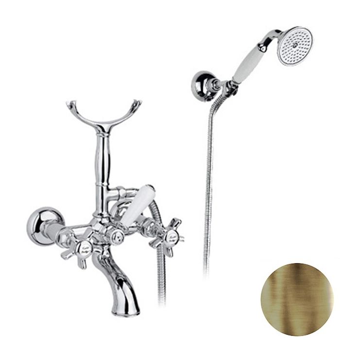 Nicolazzi Dames Anglaises Смеситель настенный для ванны с 2мя ручками, с переключателем ванна/душ, + комплект руч. душа, цвет: Bronze Plated