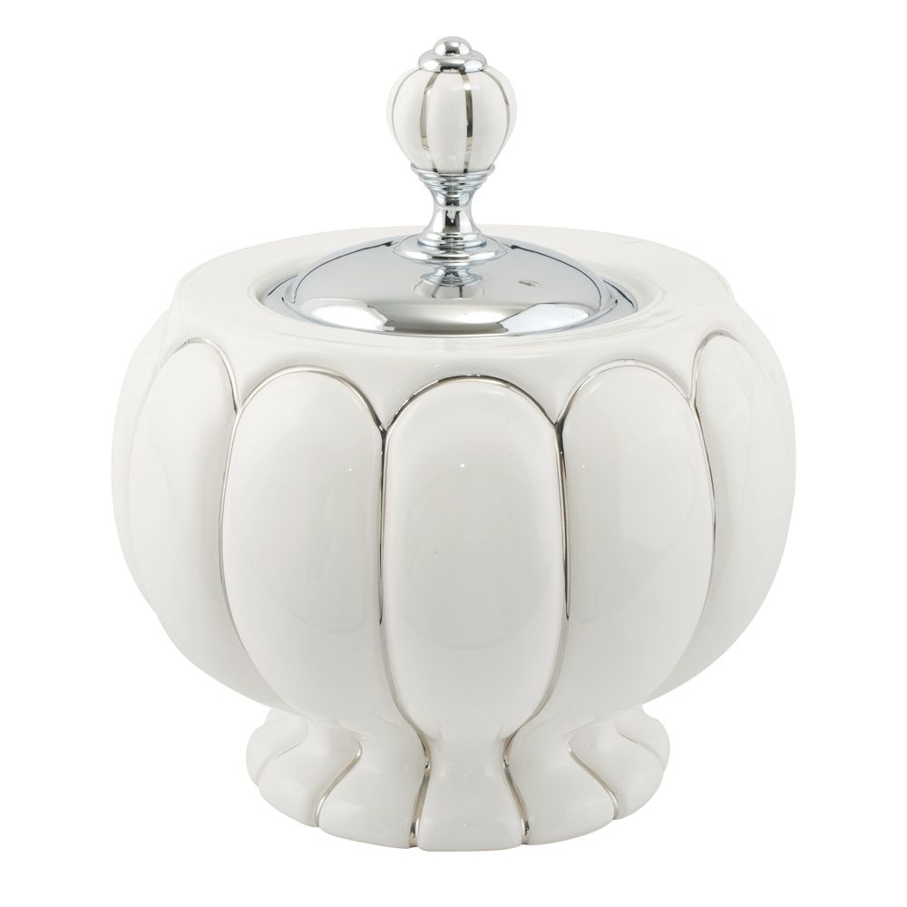 Баночка настольная коллекции OLIVIA бренда MIGLIORE предназначена для хранения ватных дисков, но в ней также можно любые различные предметы, и использовать ее не только в ванной комнате.