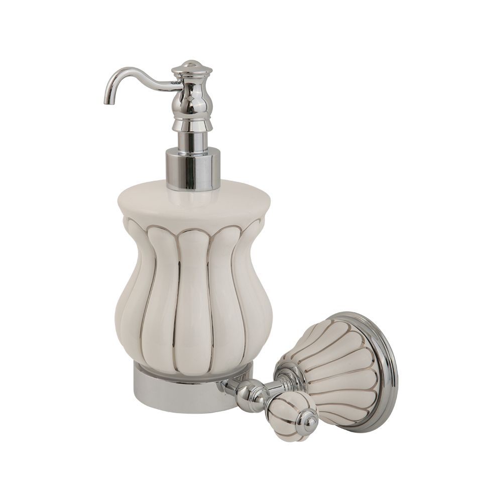 Дозатор жидкого мыла настенный с керамической колбой коллекции OLIVIA бренда MIGLIORE - один из необходимых аксессуаров, который можно использовать в ванной комнате и на кухне для мыла или моющего средства. Высококачественная белая керамика легко моется, а нажимной механизм имеет эргономичный дизайн. Между керамикой и латунным кольцом имеется уплотнительное пластиковое кольцо, которое надежно удерживает колбу дозатора.
