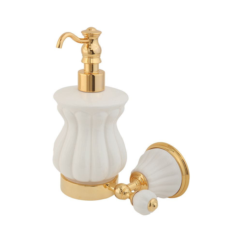 Дозатор жидкого мыла настенный с керамической колбой коллекции OLIVIA бренда MIGLIORE - один из необходимых аксессуаров, который можно использовать в ванной комнате и на кухне для мыла или моющего средства. Высококачественная белая керамика легко моется, а нажимной механизм имеет эргономичный дизайн. Между керамикой и латунным кольцом имеется уплотнительное пластиковое кольцо, которое надежно удерживает колбу дозатора.