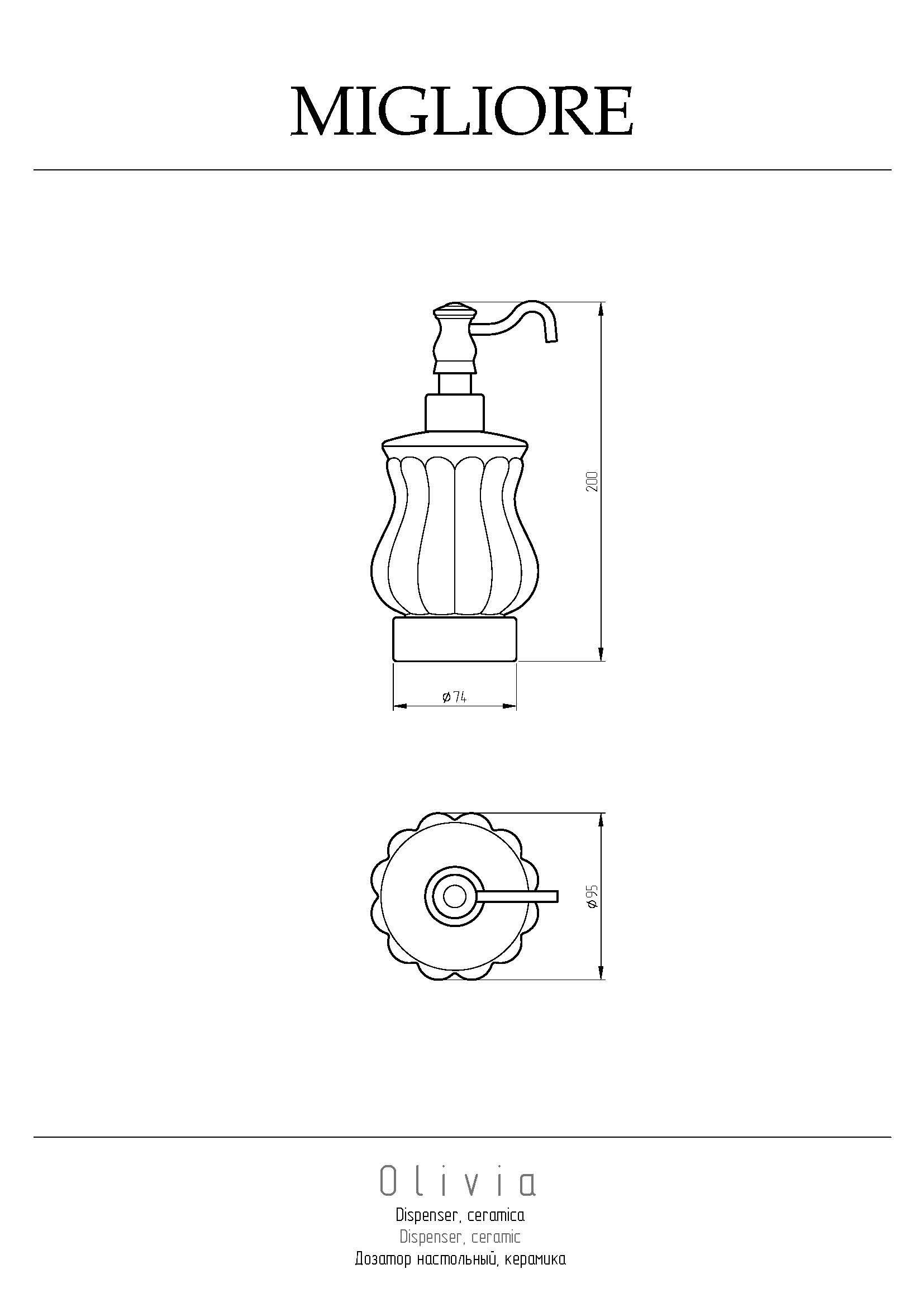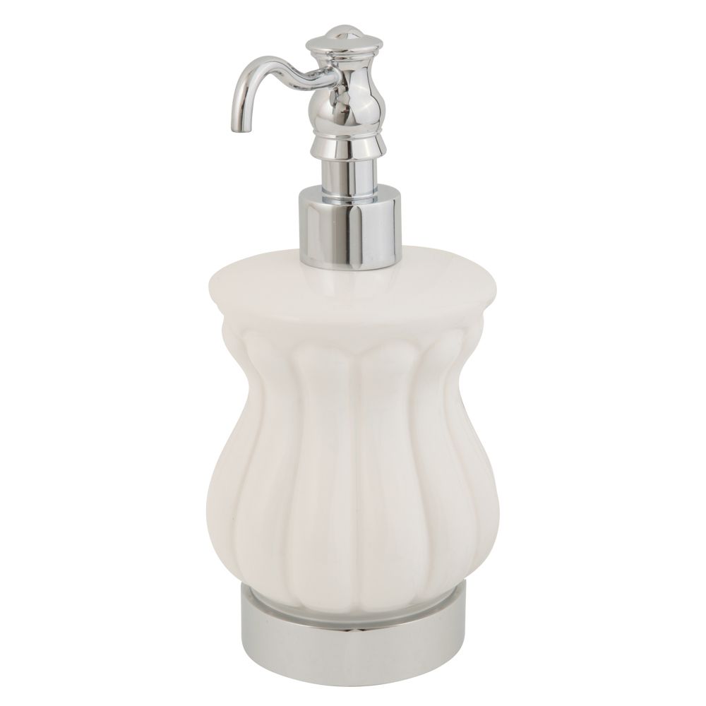 Дозатор жидкого мыла настольный с керамической колбой коллекции OLIVIA бренда MIGLIORE - один из необходимых аксессуаров, который можно использовать в ванной комнате и на кухне для мыла или моющего средства. Высококачественная белая керамика легко моется, а нажимной механизм имеет эргономичный дизайн. Между керамикой и латунным кольцом имеется уплотнительное пластиковое кольцо, которое надежно удерживает колбу дозатора.