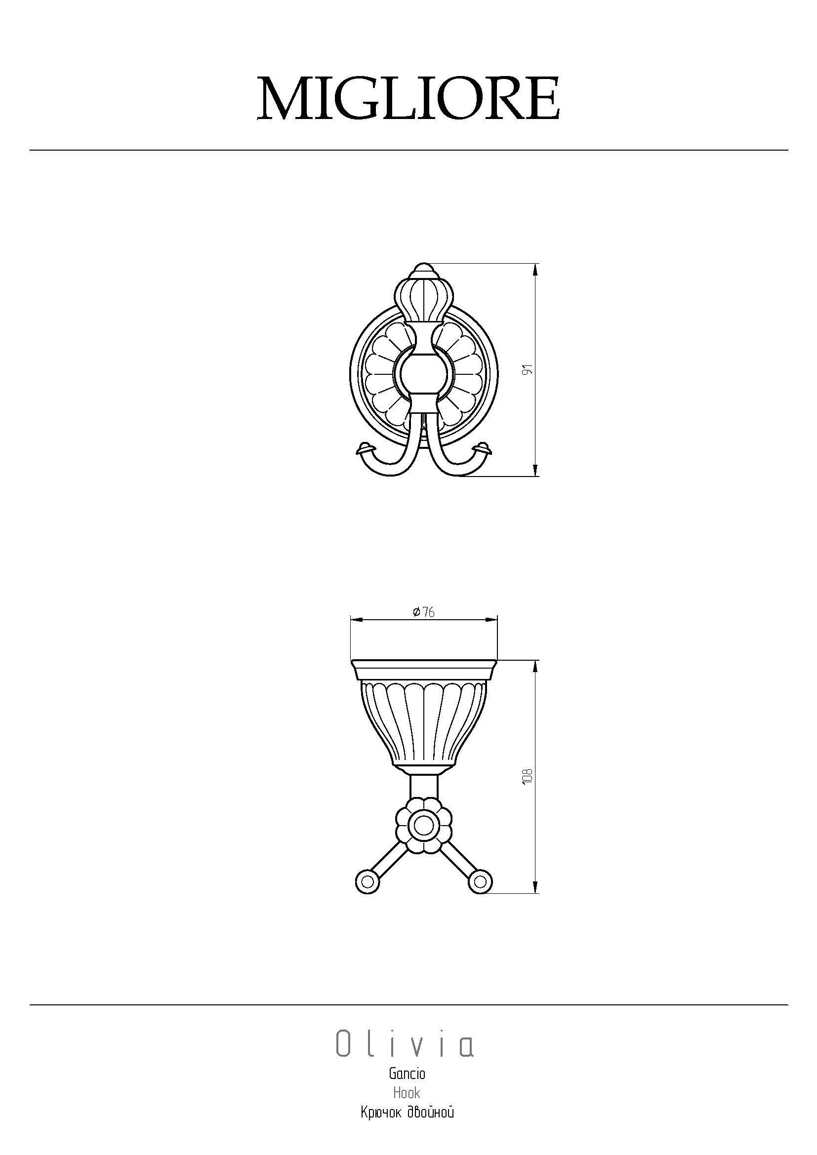 Крючок коллекции OLIVIA бренда MIGLIORE - самый необходимый предмет, который вы можете использовать в ванной комнате, на кухне, в корридоре. Можно повесить несколько крючков рядом или придумать иные дизайнерские решения.