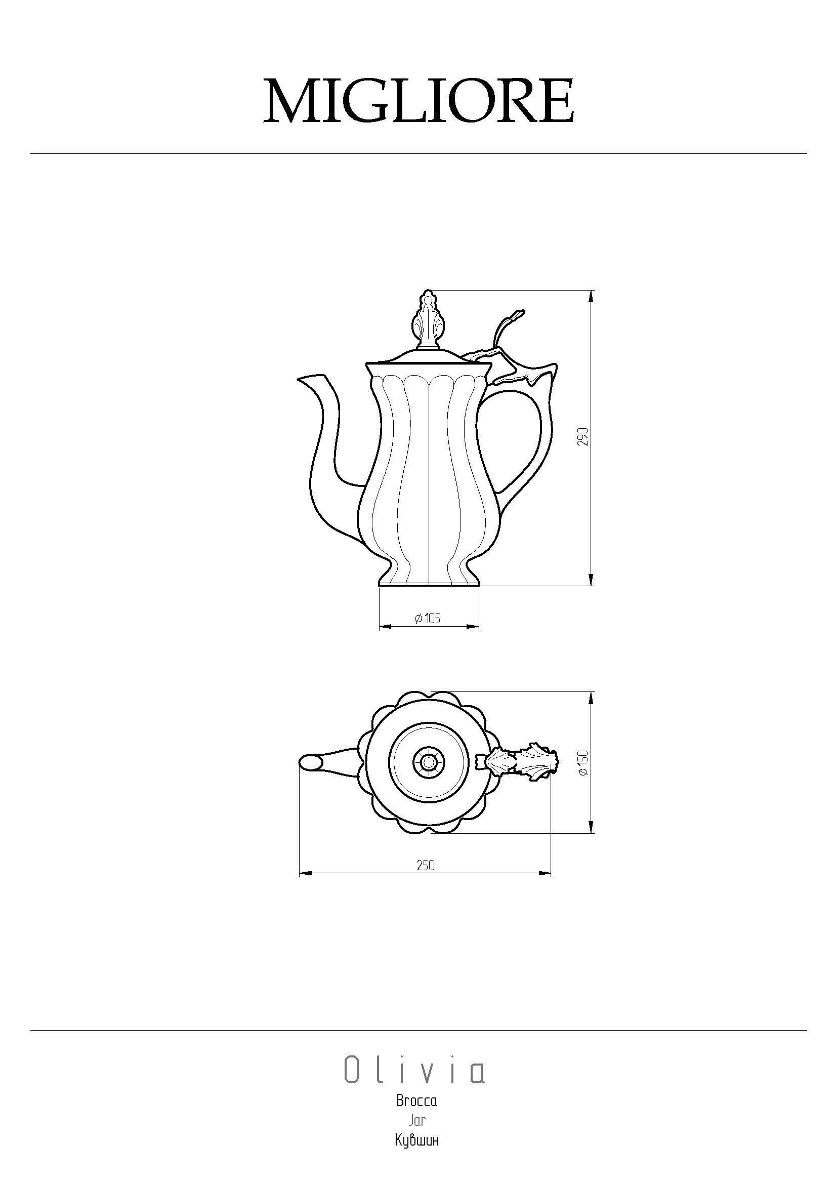Кувшин коллекции OLIVIA бренда MIGLIORE можно использовать для воды, при омовении или просто для украшения интерьера
