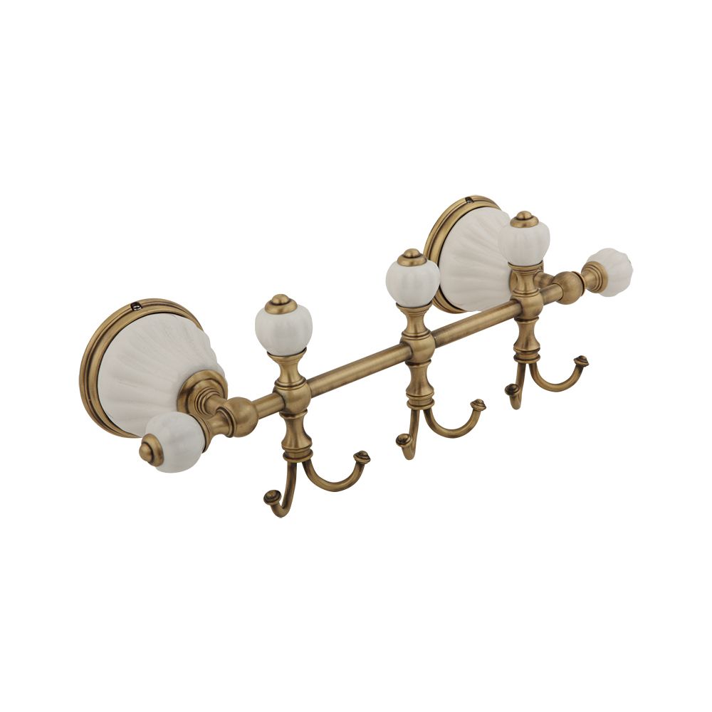 Планка с 3-мя крючками коллекции OLIVIA бренда MIGLIORE- многофункциональный аксессуар, который можно использовать в ванной комнате, в сауне, в коридоре или на кухне. Общая длина составляет 30 см, 3 крючка классической формы расположены на достаточном удалении друг от друга, что позволит удобно разместить любые вещи и полотенца.