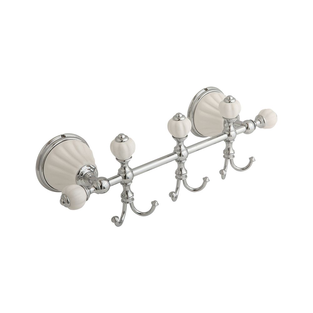 Планка с 3-мя крючками коллекции OLIVIA бренда MIGLIORE- многофункциональный аксессуар, который можно использовать в ванной комнате, в сауне, в коридоре или на кухне. Общая длина составляет 30 см, 3 крючка классической формы расположены на достаточном удалении друг от друга, что позволит удобно разместить любые вещи и полотенца.