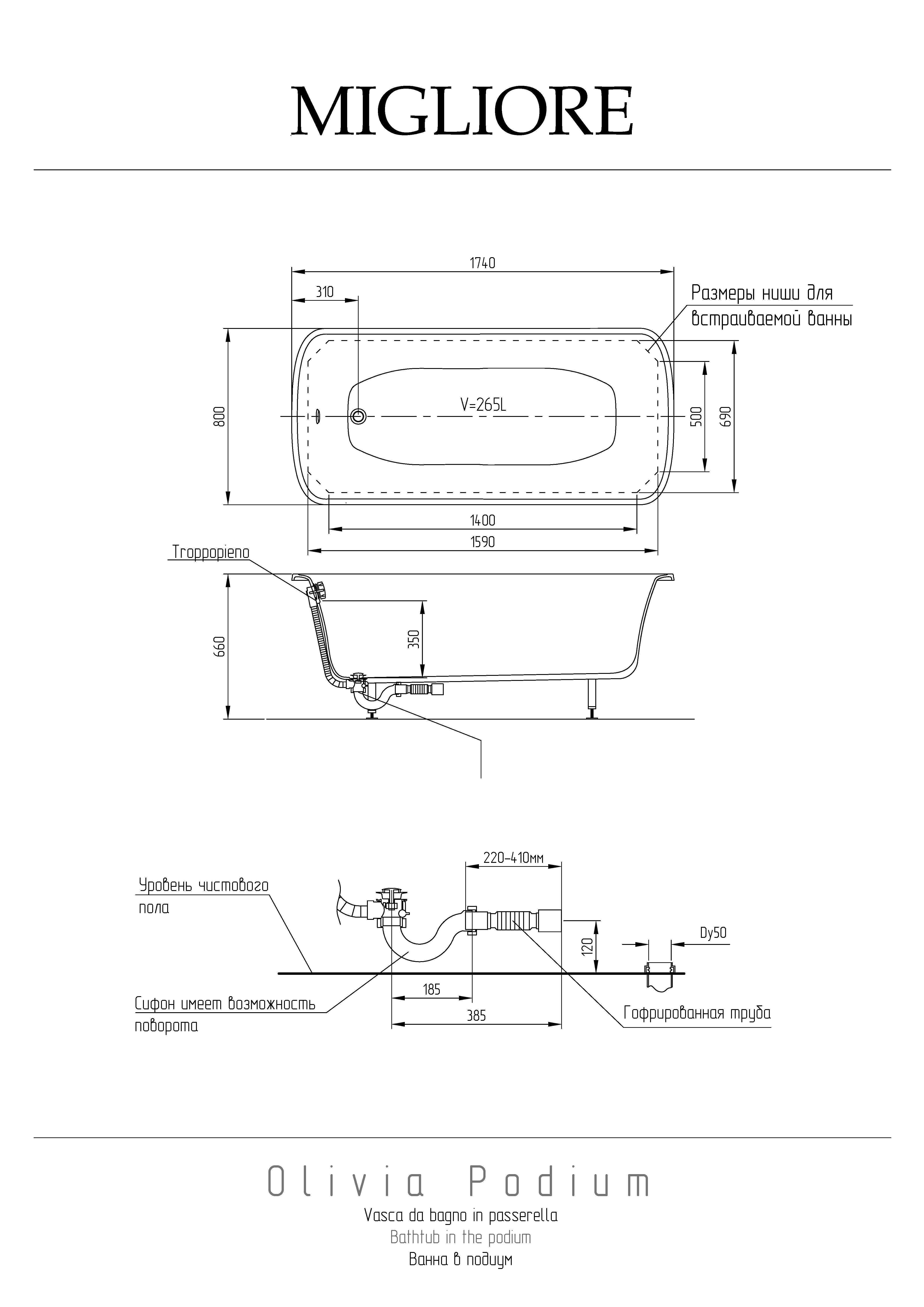 Ванна изготовлена из искусственного (литьевого) мрамора с фурнитурой итальянского производства
