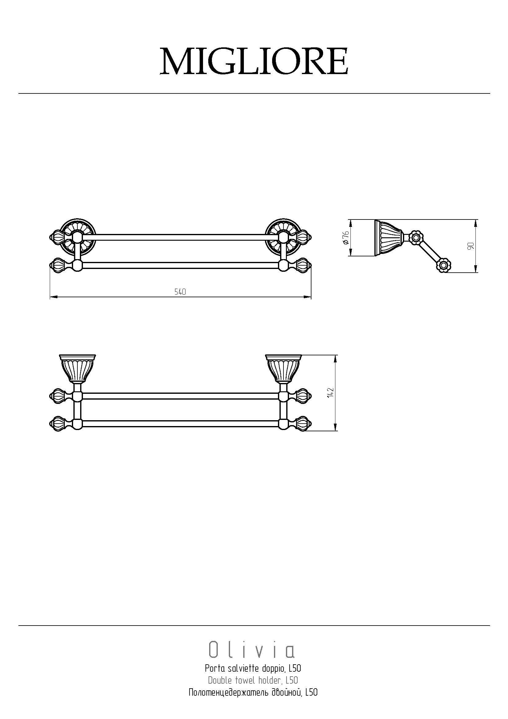 Полотенцедержатель коллекции OLIVIA бренда MIGLIORE - функциональный аксессуар для ванной комнаты. Его длина 50 см подходит для любого полотенца для рук, лица или тела.