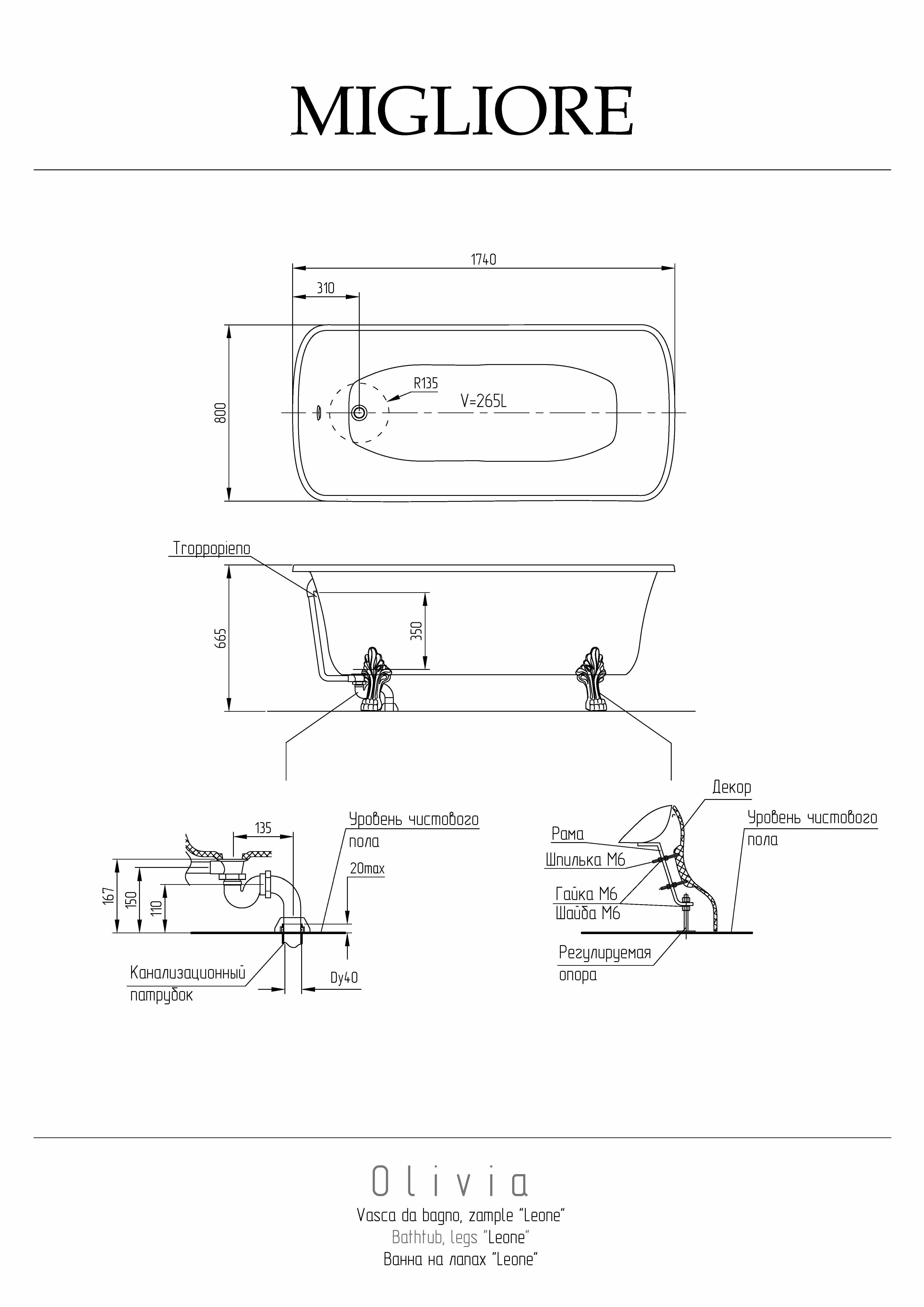 комплект ножек, слив-перелив внешний, чистящее средство для композитных ванн |