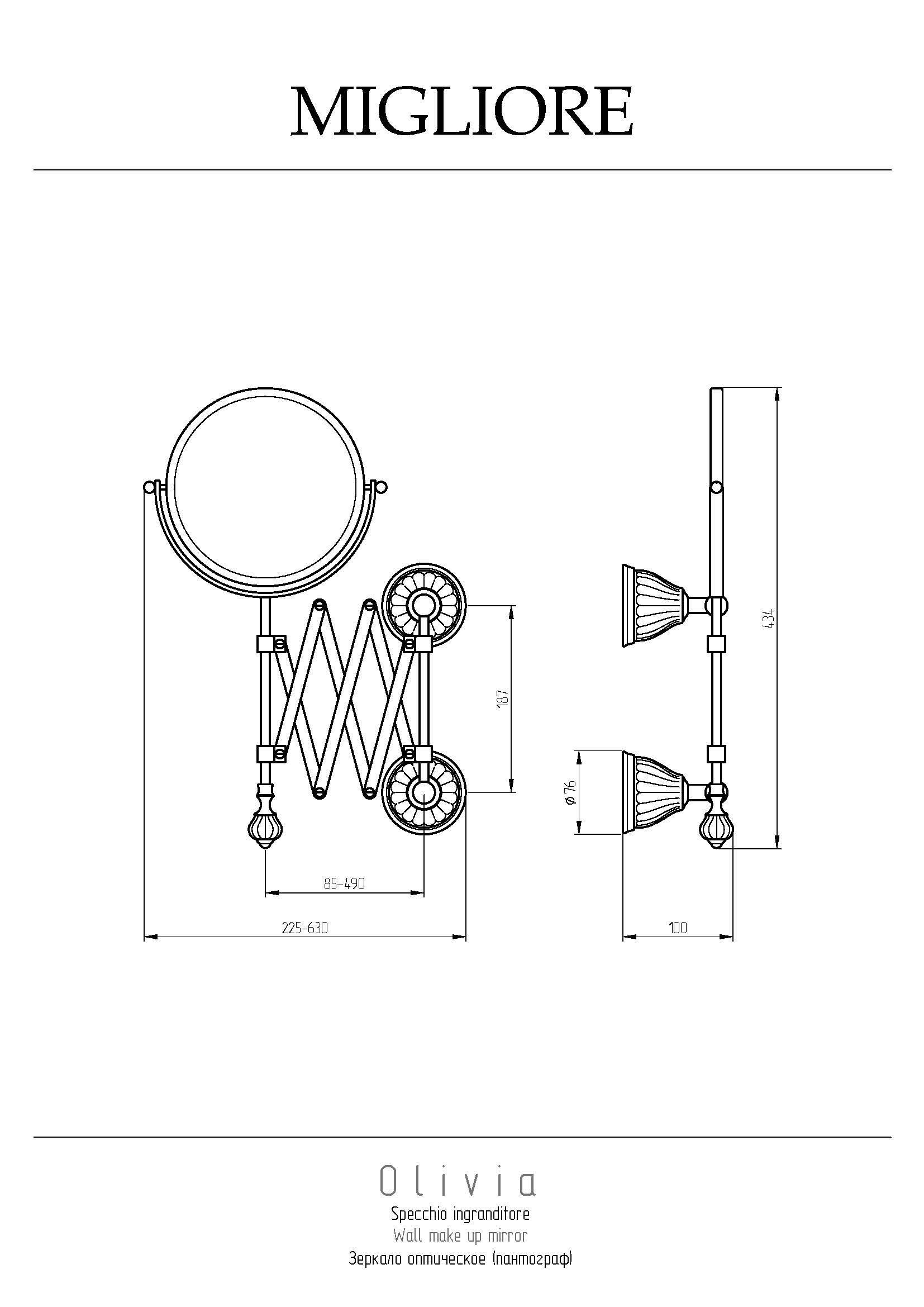 Настенное оптическое зеркало коллекции OLIVIA бренда MIGLIORE с двумя зеркальными полотнами, одно из которых имеет двухкратное увеличение для удобства нанесения макияжа или проведения уходовых процедур.