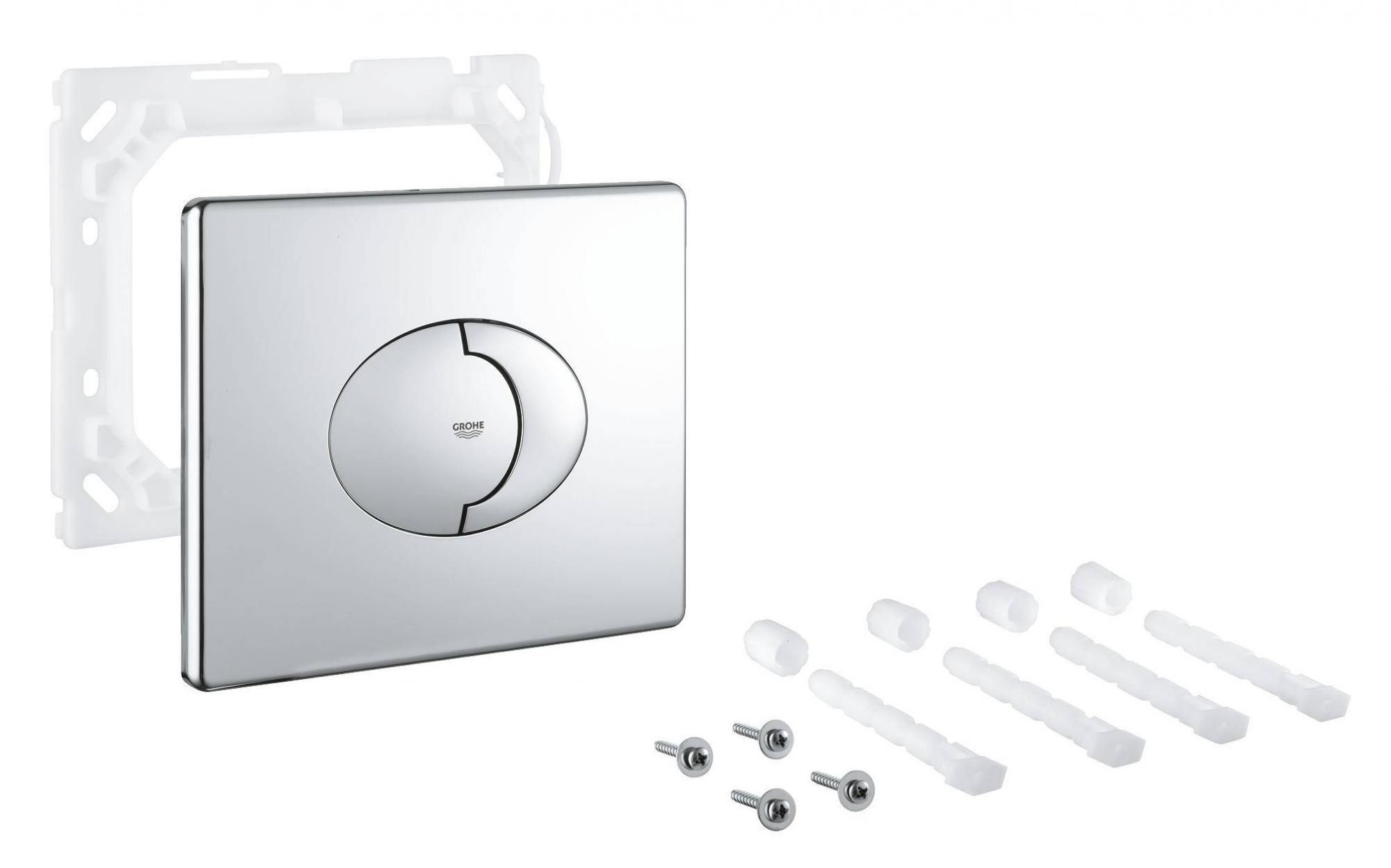 Skate Air Накладная панель 2 объема смыва или прерывание смыва старт/стоп для пневматического смывного клапана для пневматического вентиля с двумя шлангами (42253000 и 42774000) горизонтальный монтаж 156 x 197 мм из ABS GROHE EcoJoy® - Технология совершенного потока при уменьшенном расходе воды GROHE StarLight® хромированная поверхность