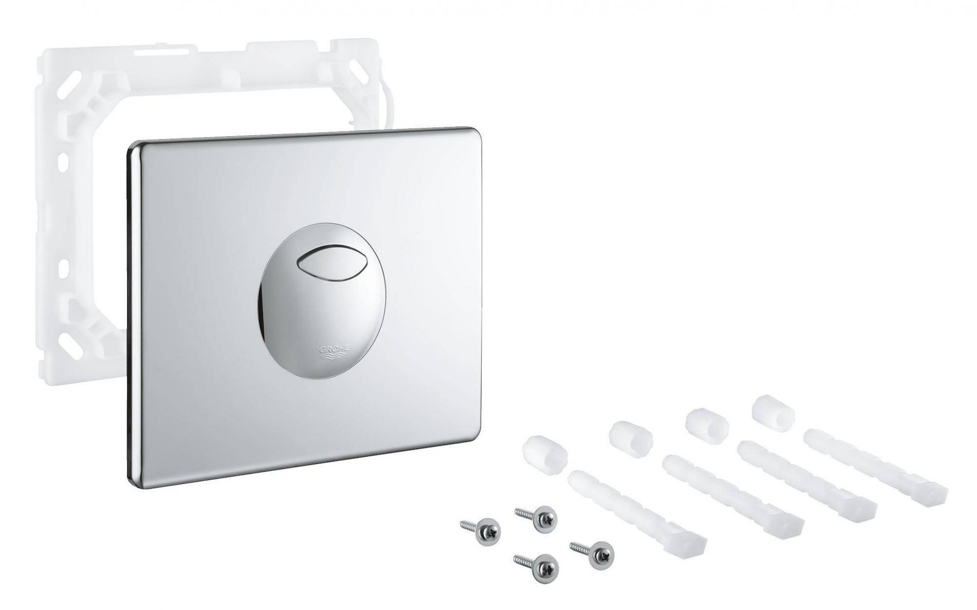 Skate Накладная панель для переоснащения для пневматического вентиля с двумя шлангами (42253000 и 42774000) 2 объема смыва или прерывание смыва старт/стоп для вертикального и горизонтального монтажа 156 x 197 мм из ABS GROHE StarLight® хромированная поверхность GROHE EcoJoy® - Технология совершенного потока при уменьшенном расходе воды