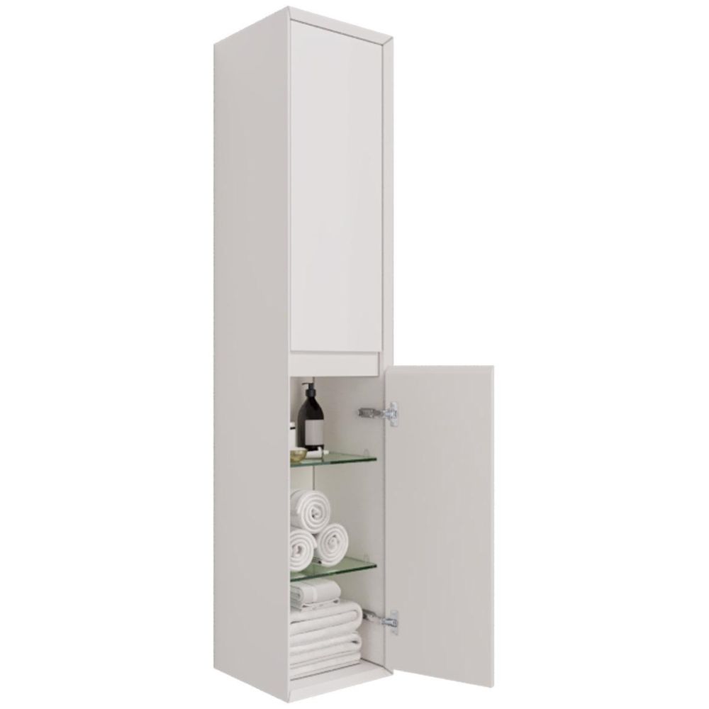 Пенал Dreja Insight 35 см, белый. Компоновка: 2 дверцы, 4 стеклянные полки.