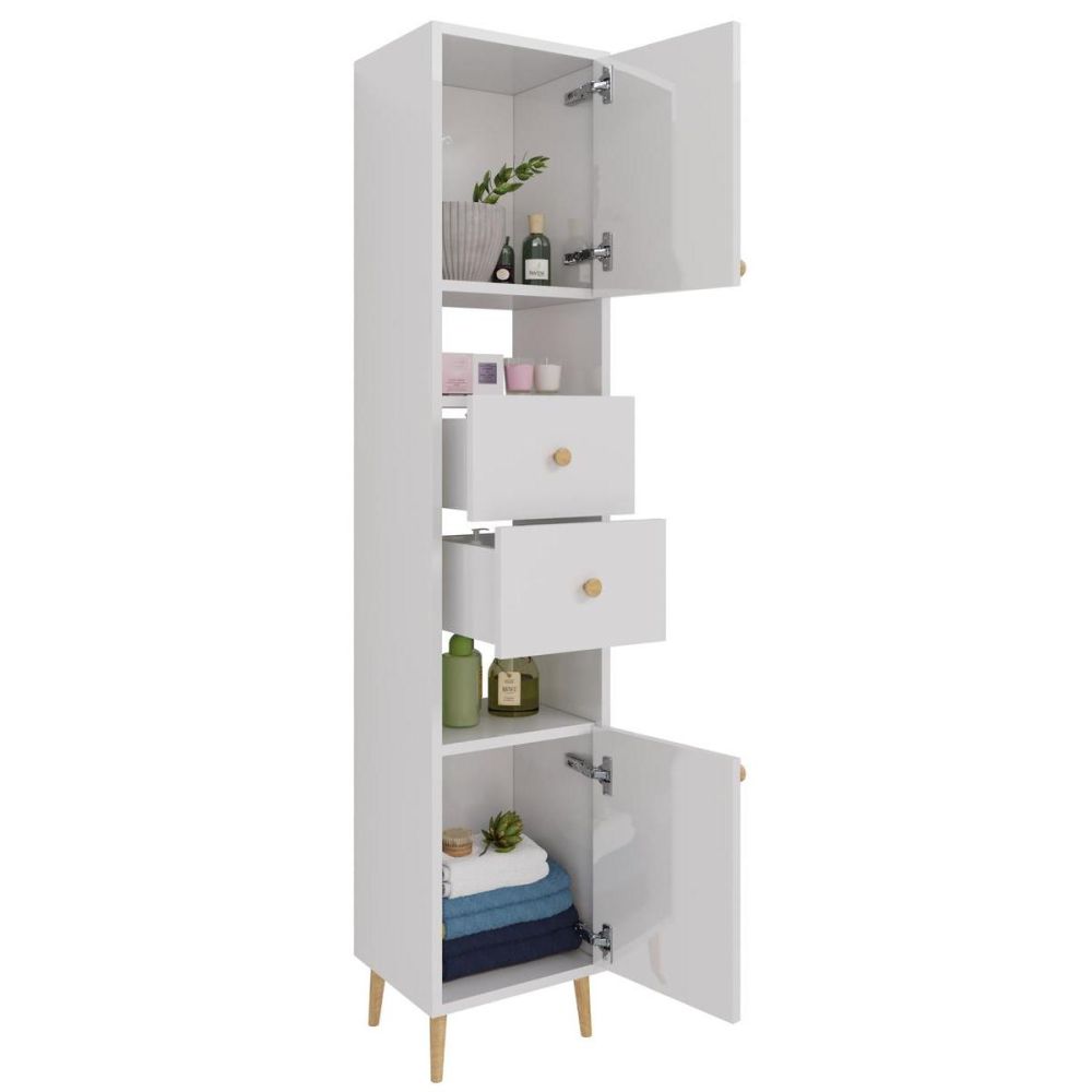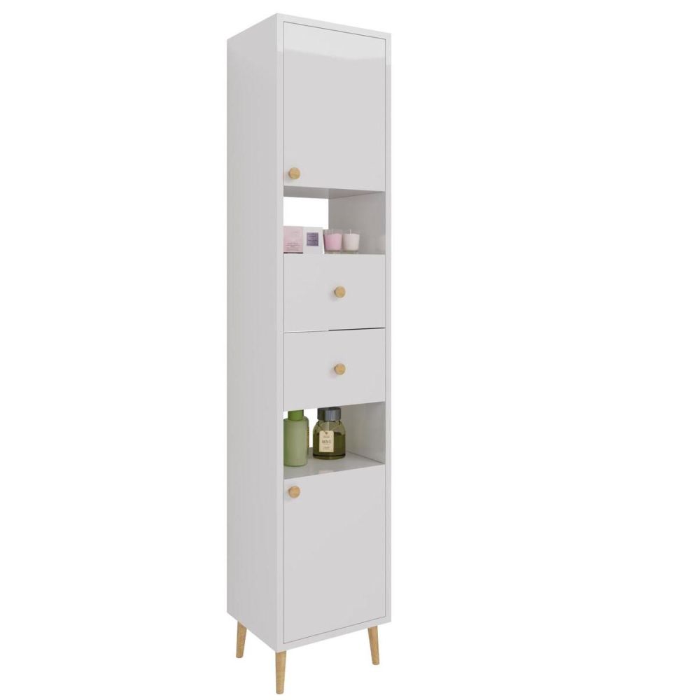 Пенал Dreja Luno 35 см, белый. Компоновка: 2 дверцы, 2 ящика, 2 открытые полки.