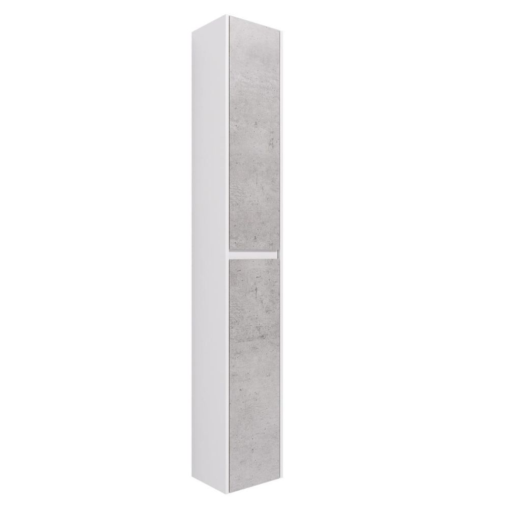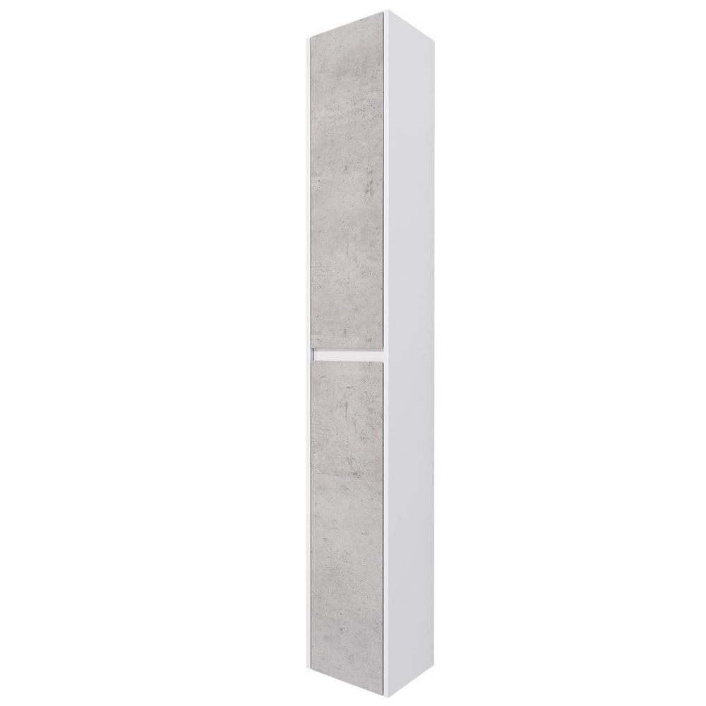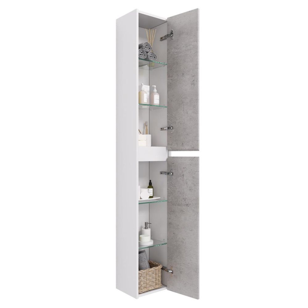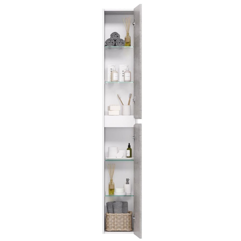 Пенал Dreja Slim 30 см, белый/бетон. Компоновка: 2 дверцы, 4 стеклянные полки.