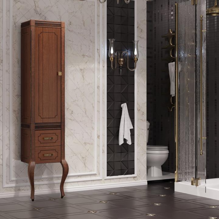 Очаровательный и легкий пенал на гнутых ножках дополняет коллекцию мебели для ванной комнаты ФРЕСКО.