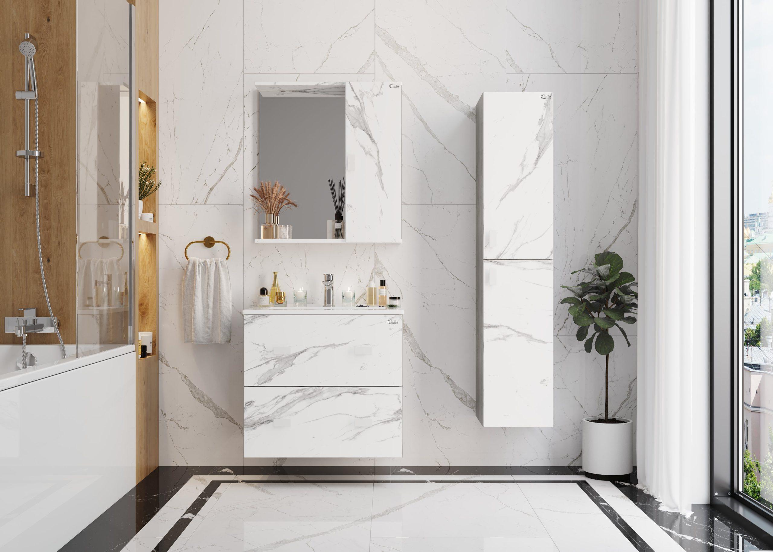 Подвесной пенал для ванной комнаты Onika МАРБЛ 30 станет стильным и функциональным элементом пространства современной ванной комнаты. Спроектированный дизайнерами в минималистичном облике, пенал отражает самые актуальные расцветки сезона - бетон и мрамор.