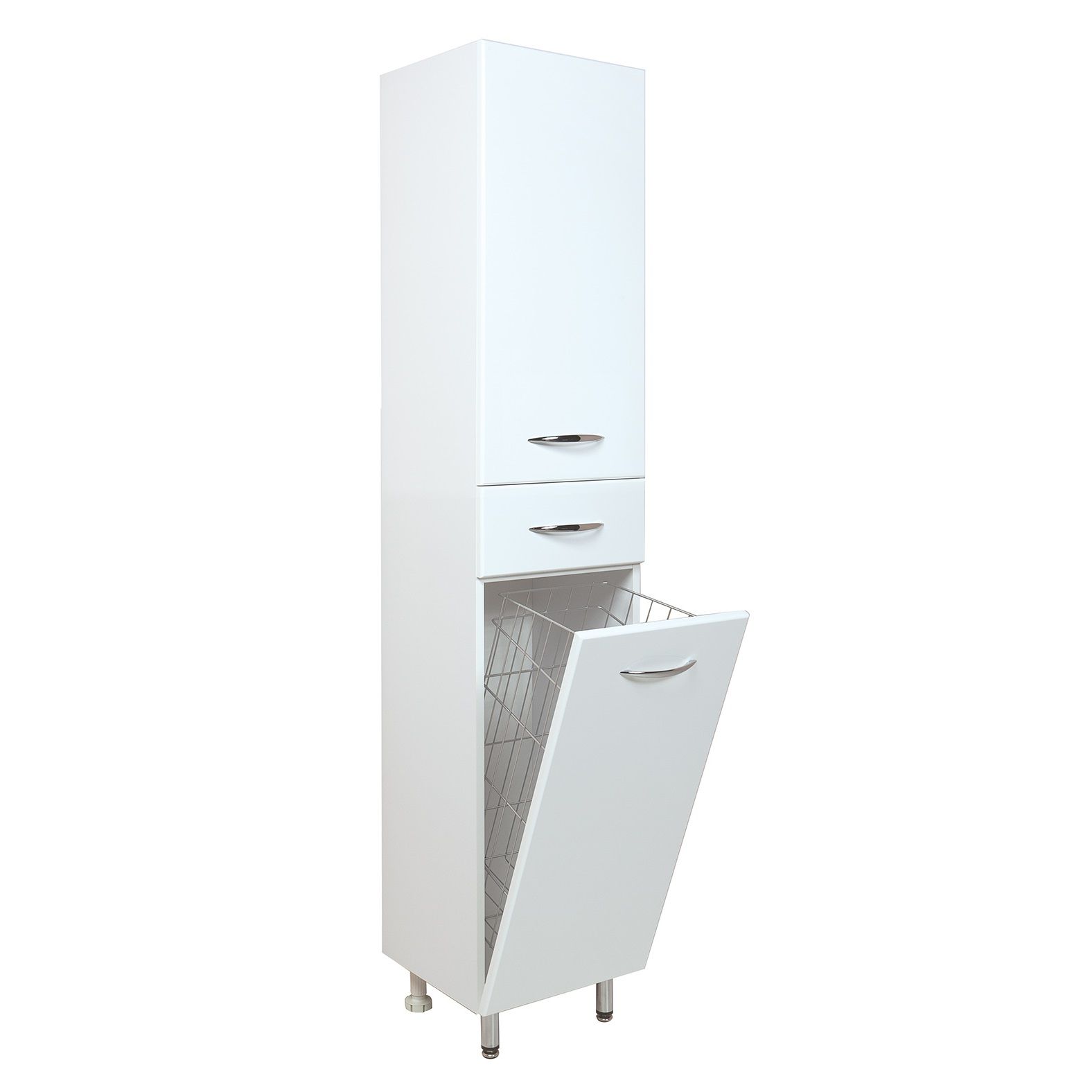 Напольный пенал для ванной комнаты с корзиной для белья Onika МОДЕРН 32, благодаря простому минималистичному дизайну, белому глянцевому фасаду, подойдет под любой интерьер ванной комнаты.