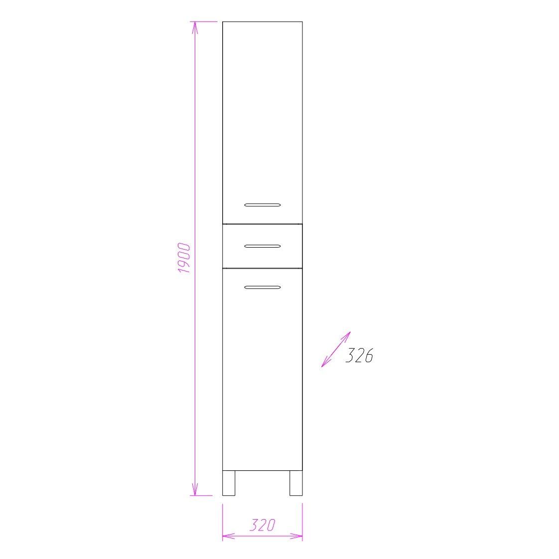 Большое отделение сверху за распашной дверцей с механизмом плавного закрывания, небольшой ящик с направляющими полного выдвижения посередине и отделение с корзиной для белья внизу шкафа обеспечит бережное хранение всех необходимых в ванной комнате вещей. Размер бельевой корзины: 250*265*640.