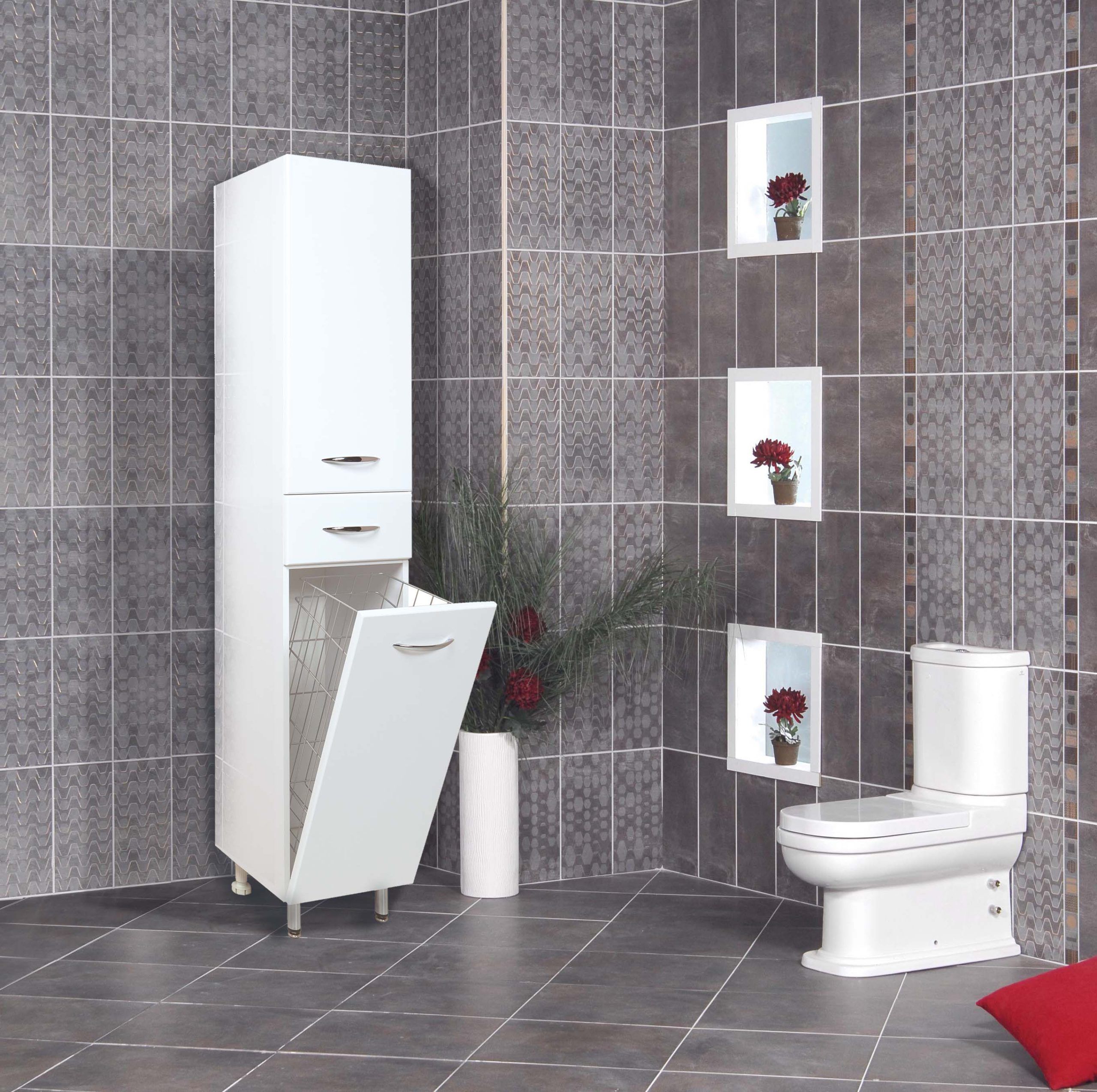 Напольный пенал для ванной комнаты с корзиной для белья Onika МОДЕРН 40 левый, благодаря простому минималистичному дизайну и белому глянцевому фасаду, подойдет под любой интерьер ванной комнаты.
