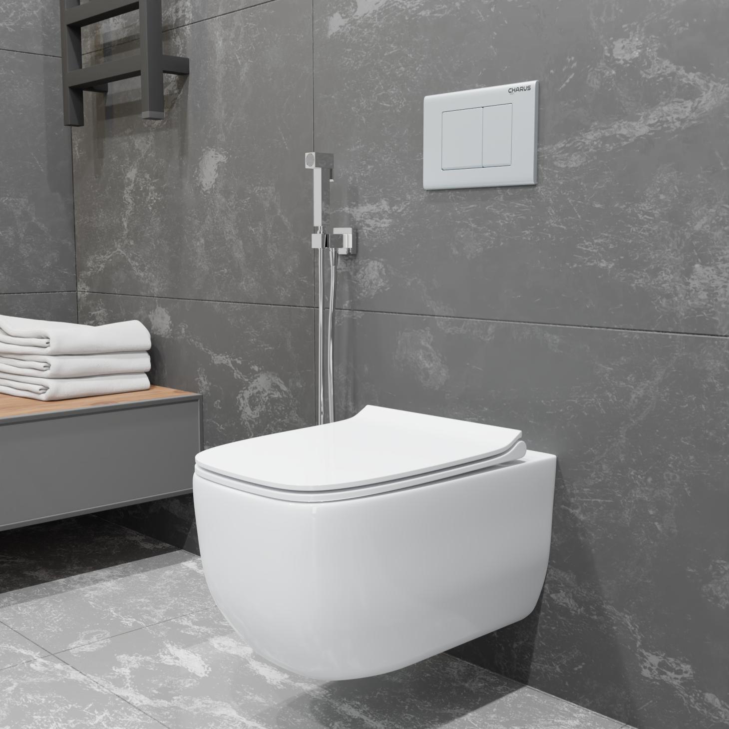 Безободковый подвесной унитаз с горизонтальным выпуском в стену c легкосъемным сиденьем с функцией микролифт в комплекте