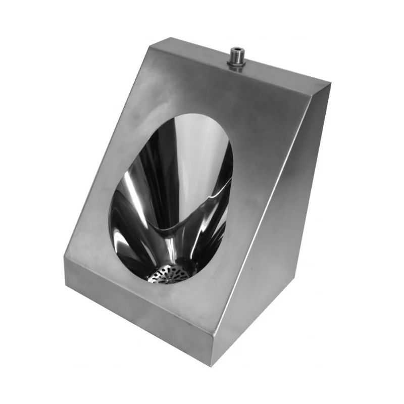 Писсуар из нержавеющей стали AISI 304 имеет матовую шливованную поверхность, чаша изделия полированная. Подключение воды возможно как с внешней, так и с внутренней стороны писсуара.