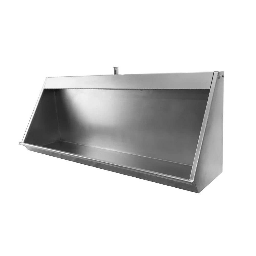 Писсуар из нержавеющей стали AISI 304 имеет матовую шливованную поверхность. Форма писсуара желобковая. Подключение воды возможно с внешней стороны через штуцер на 1" . Смыв происходит по всей длине писсуара. Отверстие смыва справа.