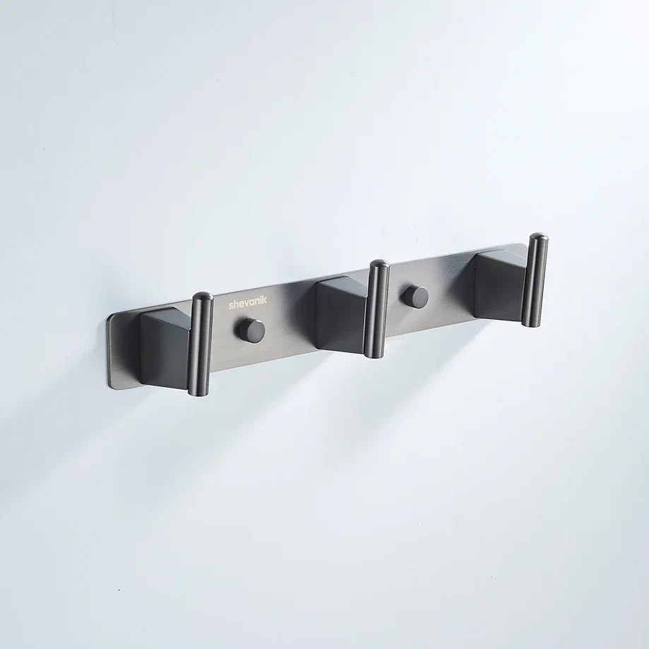 Планка с тремя крючками Shevanik SG5731T в современном цвете "оружейная сталь" — это стильное и практичное решение для организации пространства в вашем доме. Изготовленная из прочной нержавеющей стали, эта планка обеспечивает долговечность и надёжность, устойчива к влаге и механическим воздействиям, что делает её идеальным выбором для использования в ванных комнатах, кухнях и других помещениях.