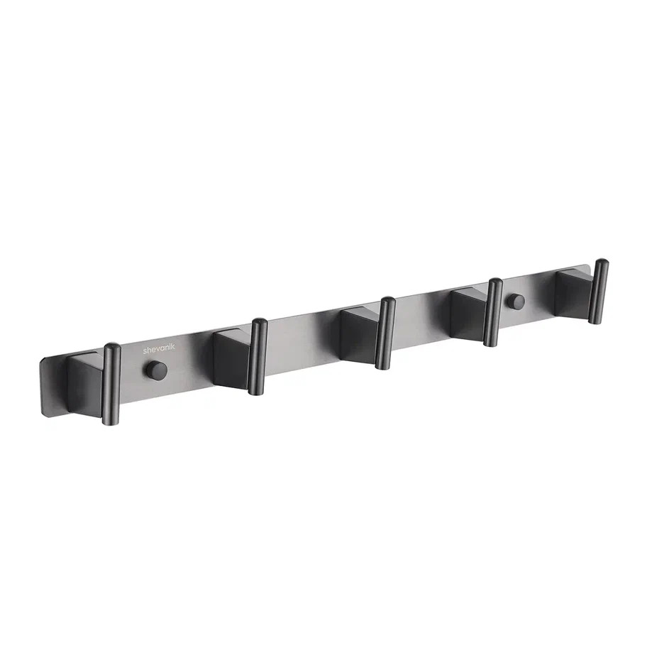 Планка с пятью крючками Shevanik SG5751T в современном цвете "оружейная сталь" — это стильное и практичное решение для организации пространства в вашем доме. Изготовленная из прочной нержавеющей стали, эта планка обеспечивает долговечность и надёжность, устойчива к влаге и механическим воздействиям, что делает её идеальным выбором для использования в ванных комнатах, кухнях и других помещениях.