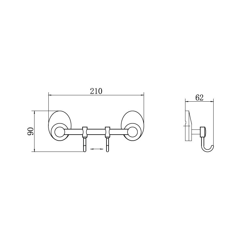 вешалка из 2 подвижных крючков на горизонтальной планке настенного монтажа, L=210 мм