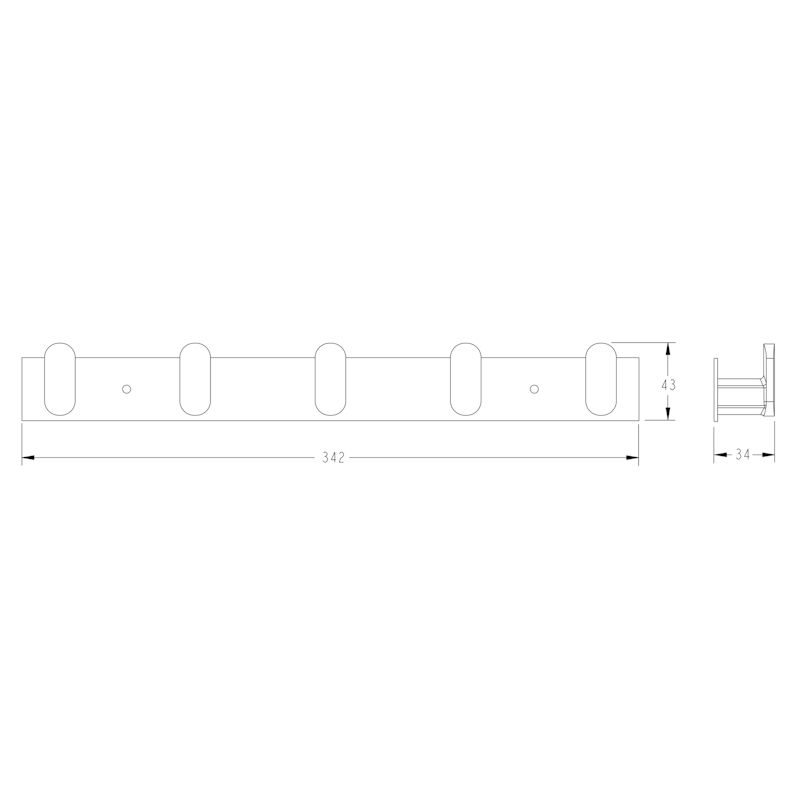 модуль с 5-ю крючками для ванной комнаты, ШВГ 342х43х34 мм