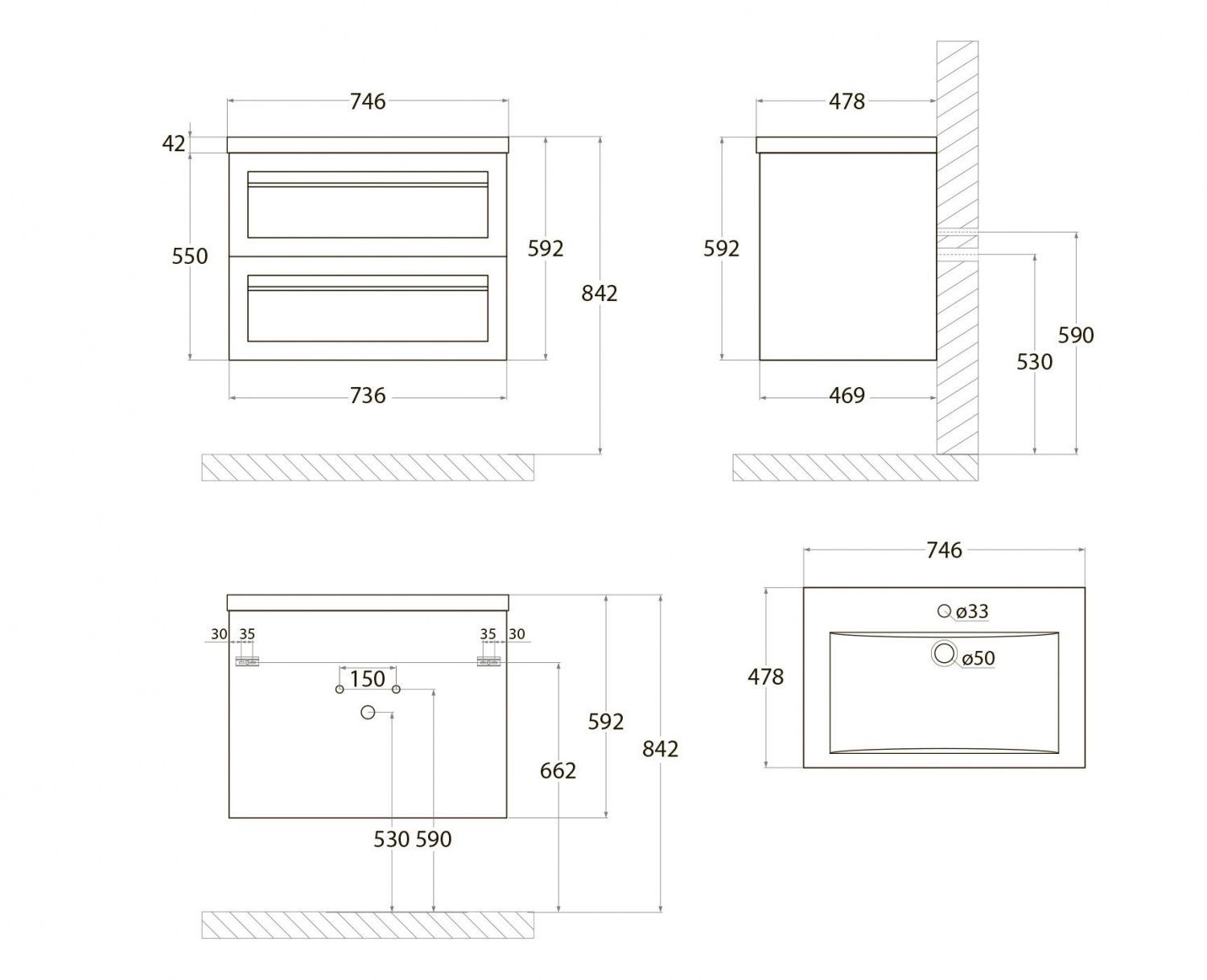 крепление к стене ; ящики с доводчиками |