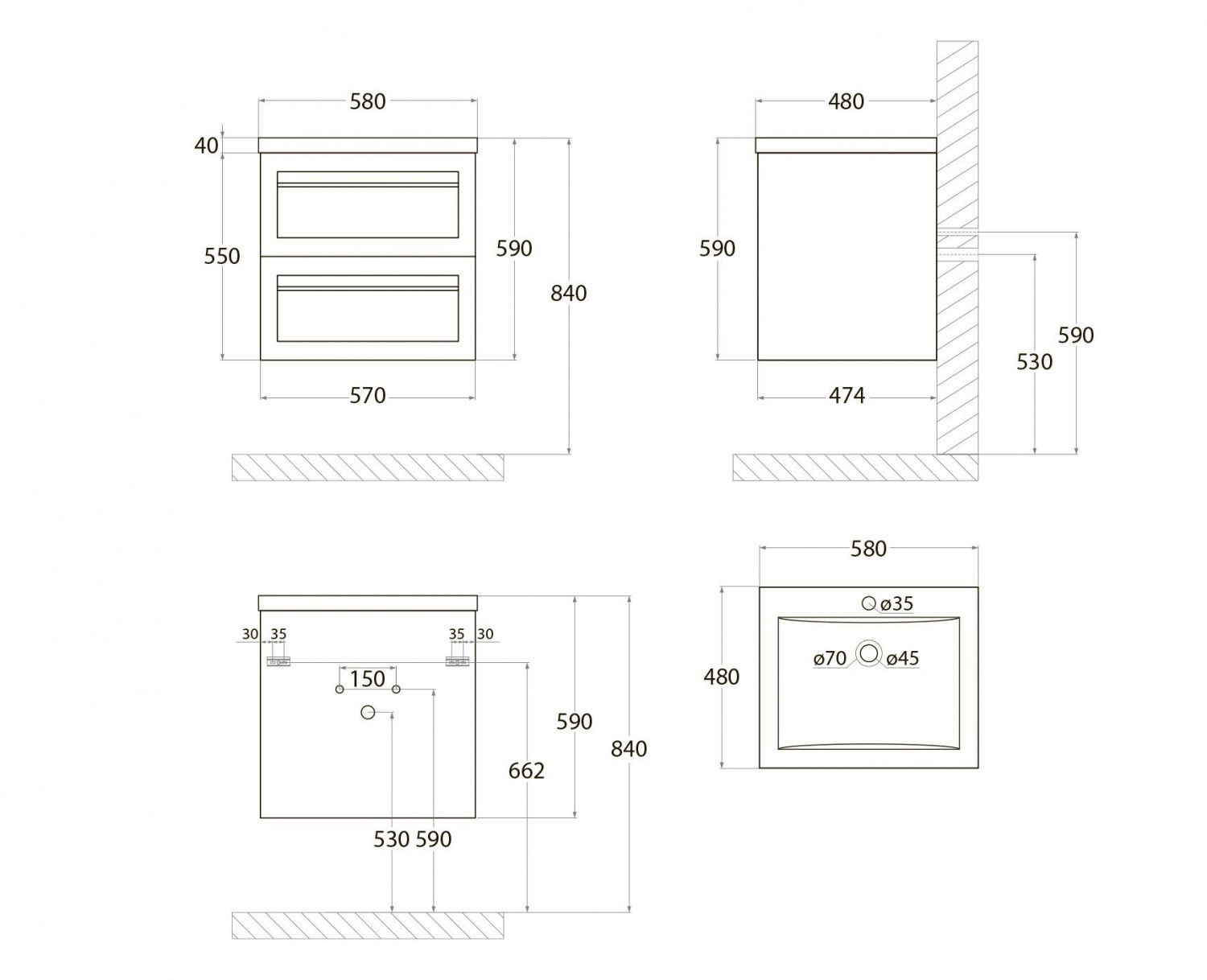 крепление к стене ; ящики с доводчиками |