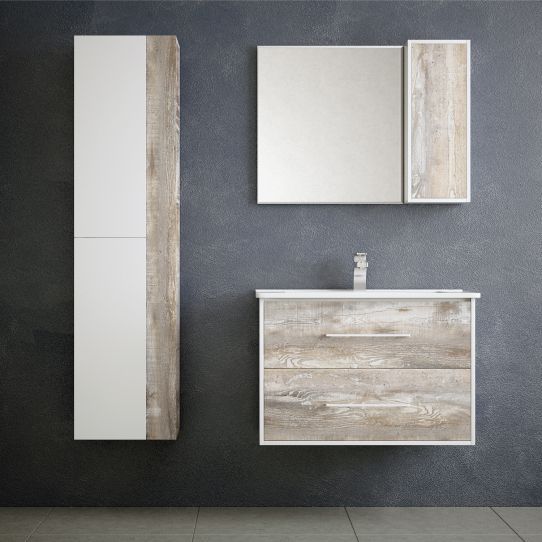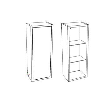 Подвесной шкаф имеет 1 распашную дверь. Дверь без ручки. Откпывается нажатием на дверь при помощи мебельного толкателя. Внутри 2 стеклянные полки на полкодержателях. Шкаф является универсальным, то есть при переворачивании - может быть как правого, так и левого открывания. Боковины и торцы видимых полок окрашены в белую глянцевую эмаль. Фасад выполнен из текстурного материала.