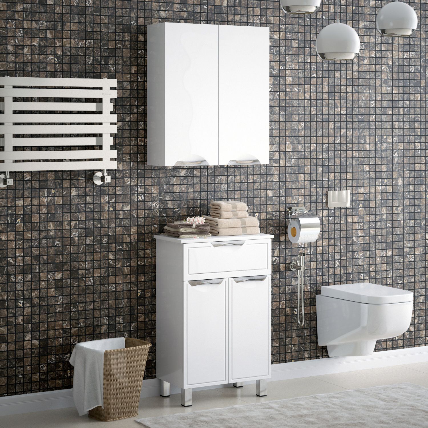 Компактное решение для небольших помещений или рациональное увеличение полезной площади. У шкафа 2 распашные двери. 2 вкладные полки, регулируемые по высоте. Осуществляется крепление к стене на мебельные подвесы.