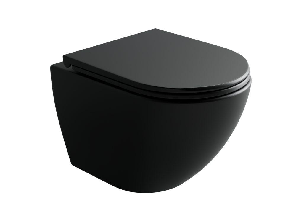 Подвесной унитаз Метрополь (Metropol) Торнадо безободковый, глубокий смыв, с ультратонким сидением с микролифтом функцией быстрого снятия, с крепежом для полностью скрытого монтажа, цвет черный матовый