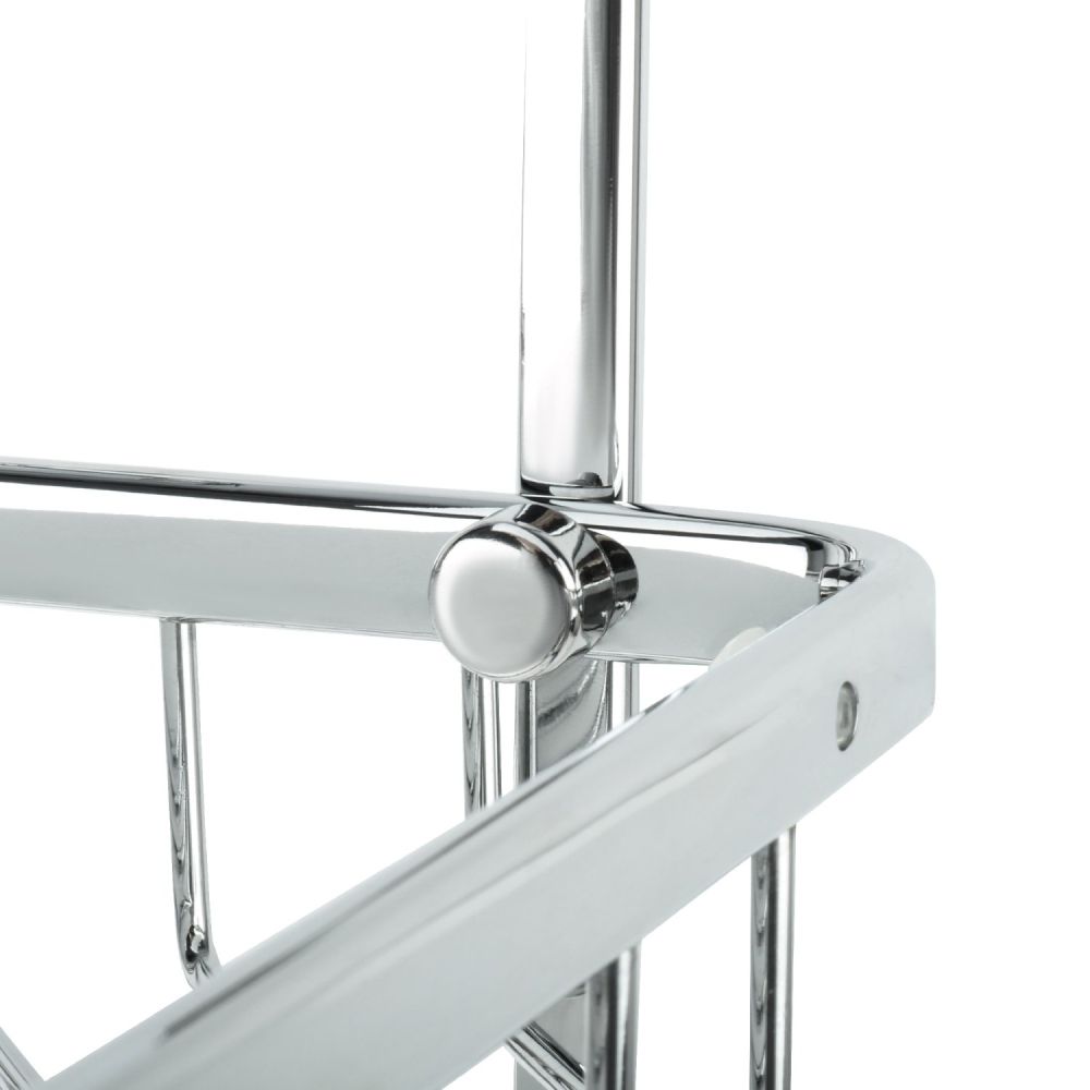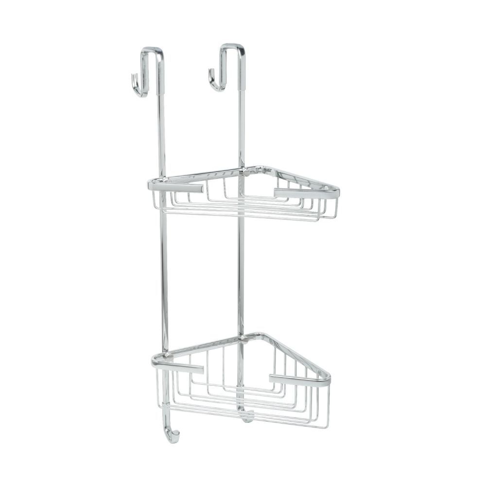 Двухэтажная угловая полка-корзина для ванной комнаты в классическом хромированном стиле. Выдерживает большие нагрузки. Рассчитана на длительный срок эксплуатации во влажной среде без потери первоначального вида и прочности. Выполнена в изящном современном дизайне без острых выступов с двумя ярусами. Проста в уходе. Решетчатая конструкция обеспечивает моментальный отвод влаги и высыхание после мытья. Материал: сталь с декоративно-защитным покрытием. Монтаж: навесной на душевую штангу, перегородку или дверь.