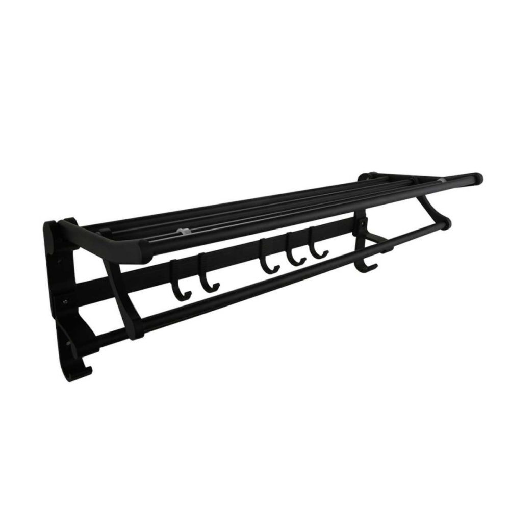 полка совмещённая с полотенцедержателем с 2 стационарными и 5 подвижными крючками настенного монтажа, L=596 мм, H=130 мм, W=235 мм