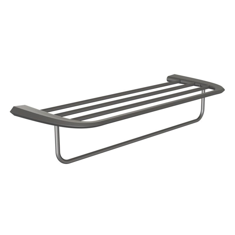 Полка для полотенец в цвете «воронёная сталь» добавит глубины и графичности пространству. Прочный ZAMAK и нержавеющая сталь SUS-201 устойчивы к влаге, а матовая поверхность с антиследовым покрытием сохраняет аккуратный вид каждый день