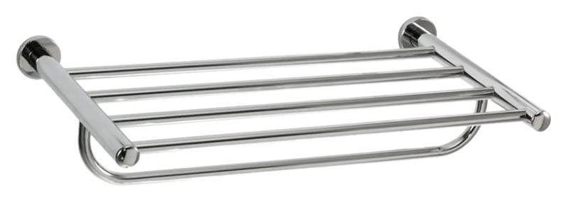 Настенная полка для полотенец Nofer Brass 16358.B с полотенцедержателем, из хромированной латуни, с глянцевой поверхностью. Скрытое крепление. Долговечна и устойчива к коррозии, легко очищается и проста в монтаже. Подходит для общественных помещений. Ширина полки 525 мм, диаметр труб 9 мм. Цена указана за полку для полотенец и комплект крепления. Все остальное приобретается дополнительно.